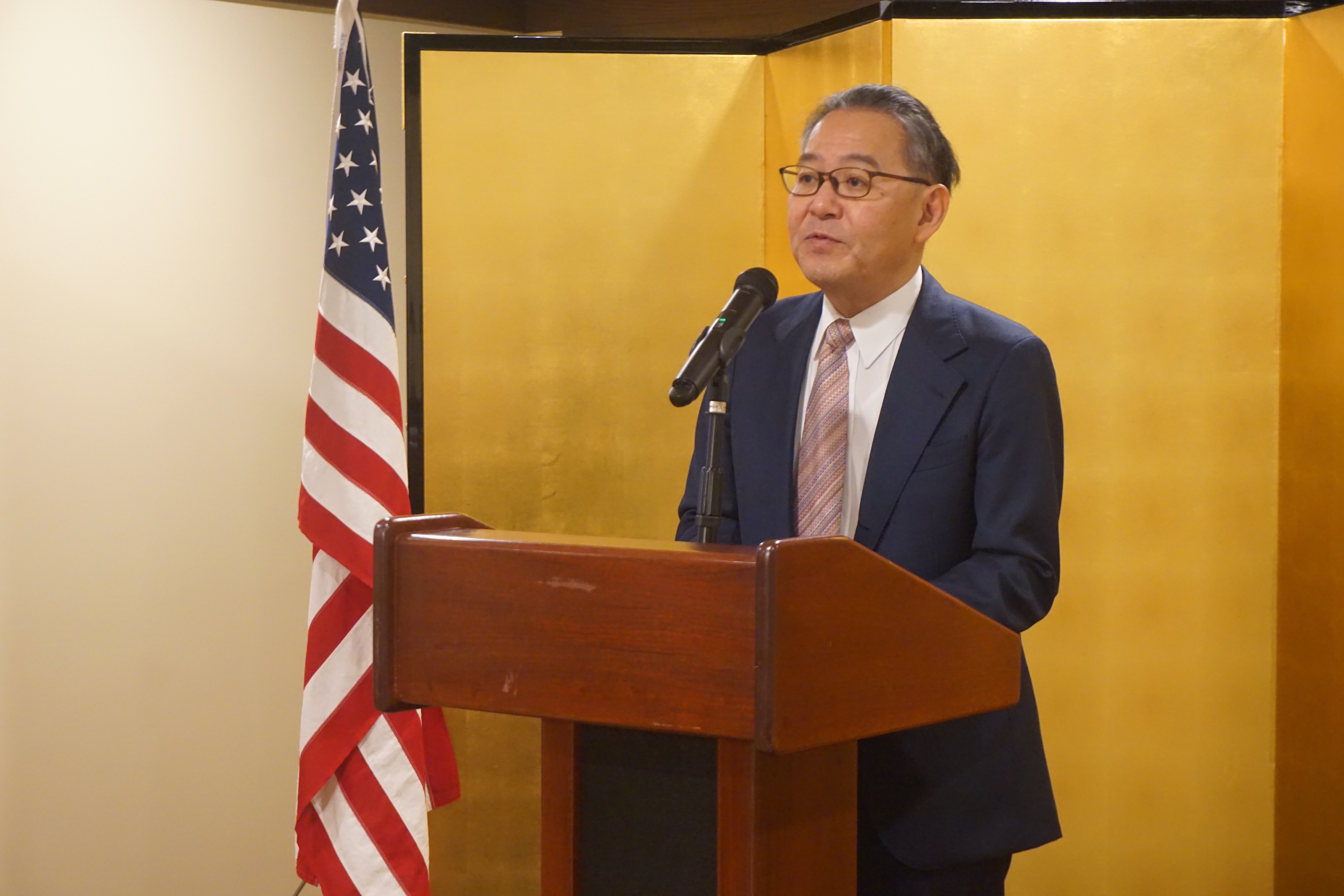 Following opening remarks by Consul General Iyori, a video message from The Hon. Bob Ferguson, Governor of the State of Washington, was played. Remarks were then delivered by Rear Admiral Jonathan Townsend, Commander of Navy Region Northwest, and a toast was offered by The Hon. Steve Hobbs, Secretary of State of Washington.