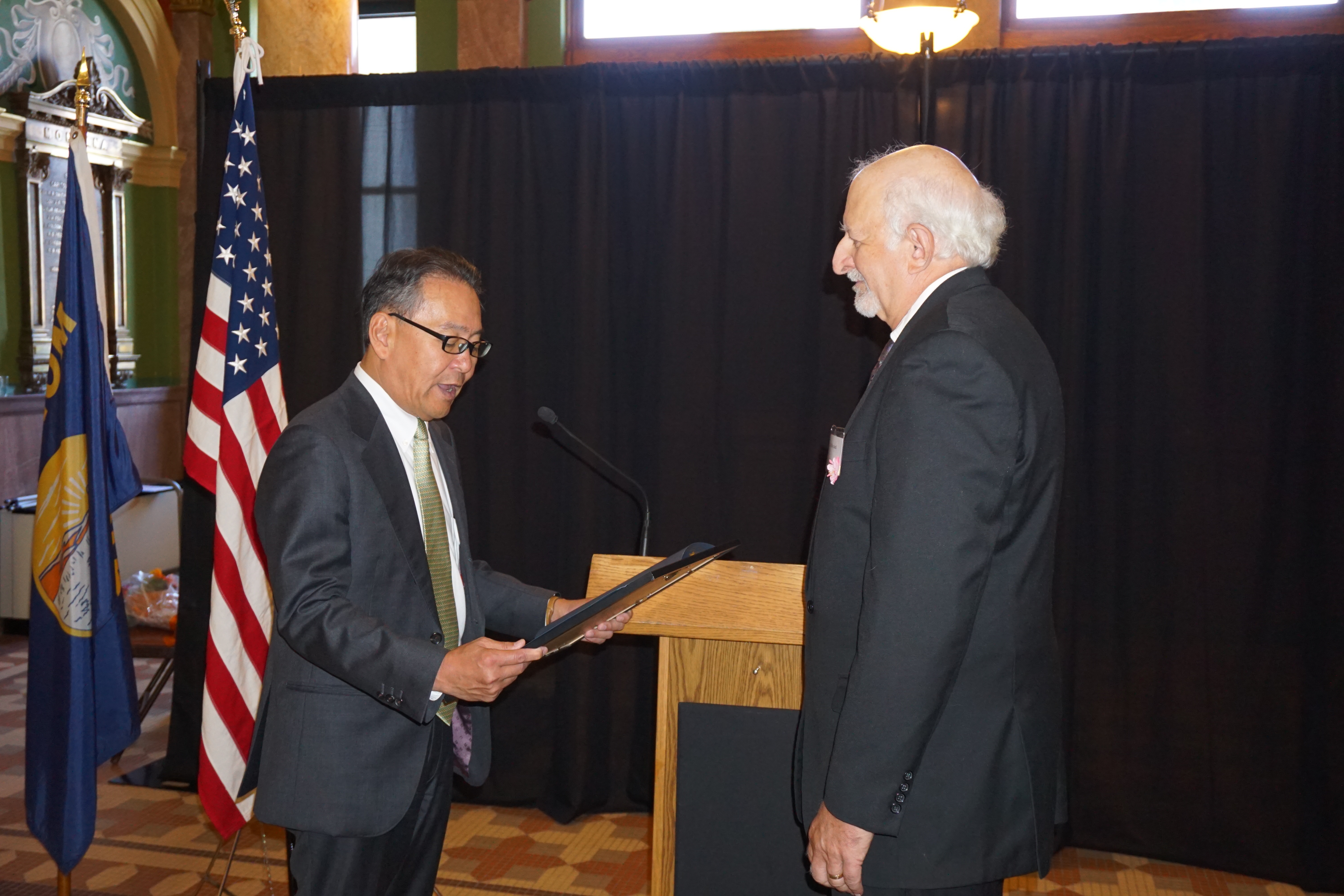 On October 8, 2025, a ceremony and reception were held at the Montana State Capitol Rotunda to present the Foreign Minister’s Commendation to Mr. Ian MacDonald Marquand, former Honorary Consul of Japan in Helena. The event was attended by Mr. Marquand’s family members, colleagues, and friends.