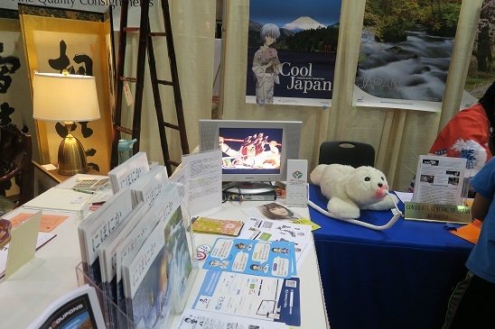 当館は、本行事に計画当初から共催団体として積極的に参画し、広報ブースを設置して、日本の多様な文化を紹介する冊子(にぽにか等)や、観光やビジネスにオープンである日本をアピールするパンフレットを配布するとともに、Discover the spirit of Japan(DVD)の上映等を行いました。