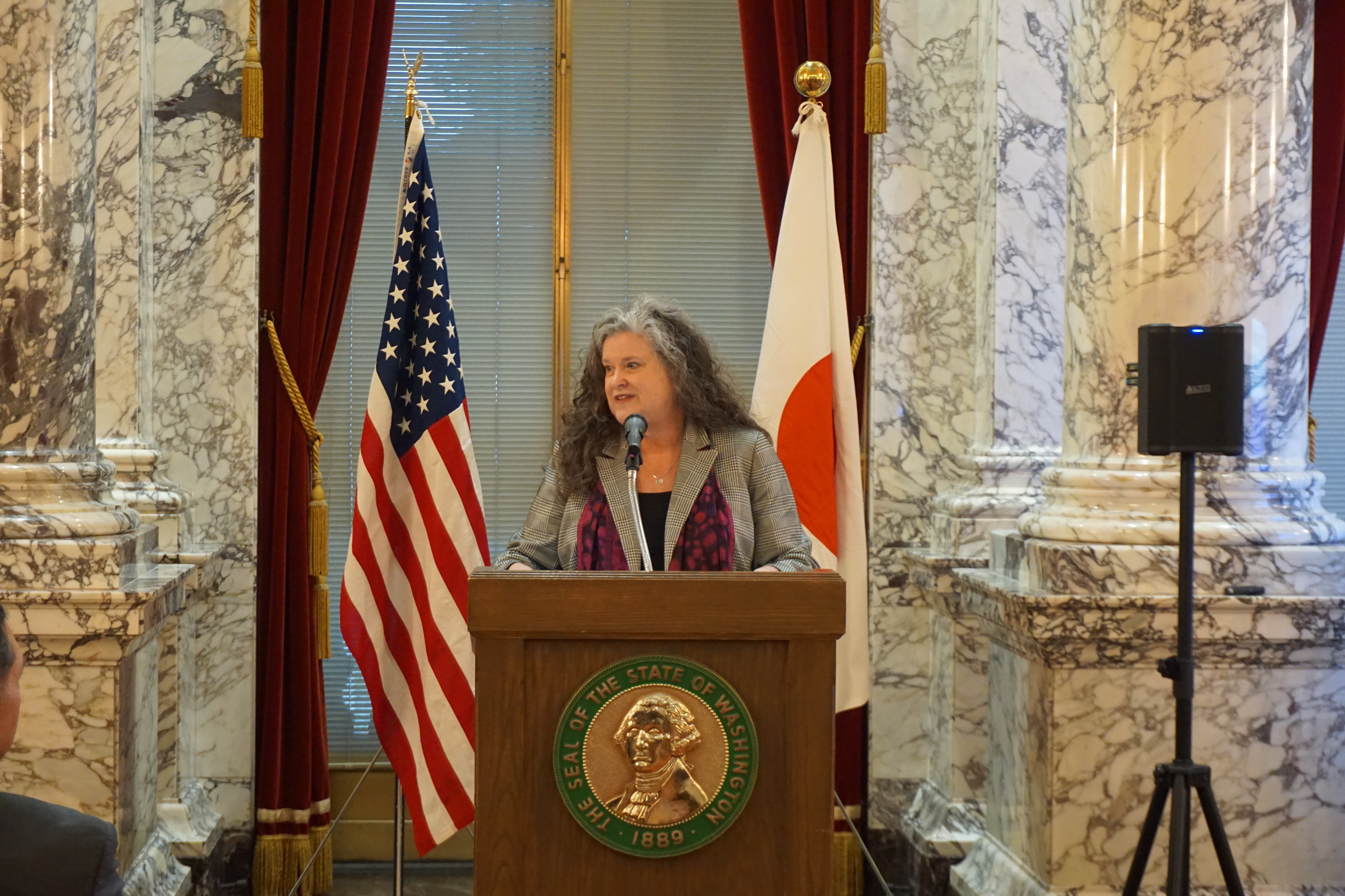 TVW社社長のレネー・ラドクリフ・シンクレア氏の司会進行で、伊従総領事による開会挨拶の後、2名のゲストスピーカーによる講演を通じて、参加者は日本とワシントン州との深い関係について理解を深めました。